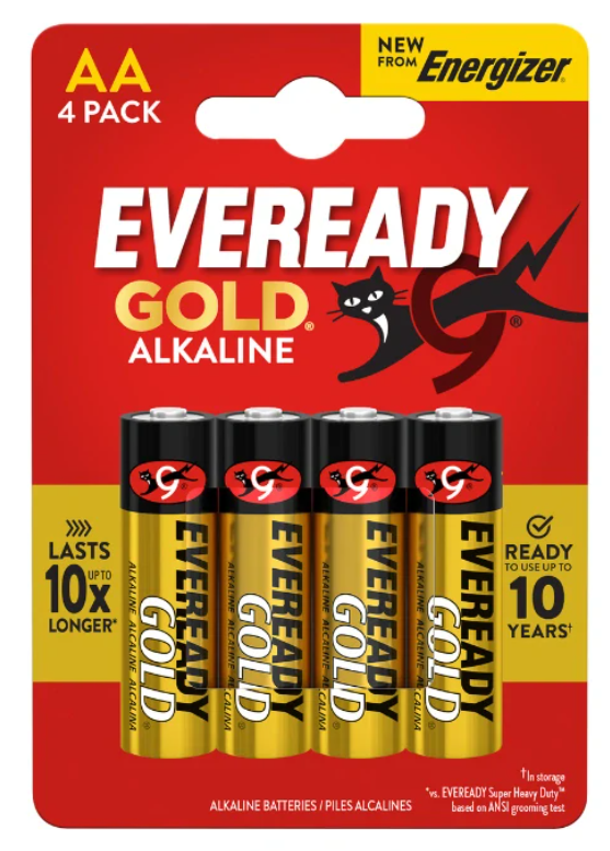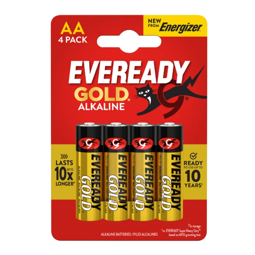 Alkalické baterie EVEREADY GOLD® jsou ideální pro zařízení s nízkou až střední spotřebou energie, jako jsou dálkové ovladače, rádia, kalkulačky a hračky. Vyznačují se cenovou dostupností, dlouhou výdrží a konzistentním výkonem.
