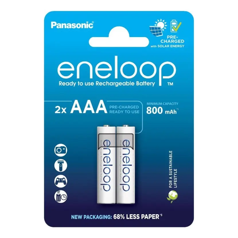 Odpovědí společnosti Panasonic je baterie Eneloop. Tyto baterie u nás zakoupíte bez obalu (bez plastového blistru), jelikož baterie dlouhodobě nakupujeme v papírových kartonech po 500 ks a nabízíme je pak volně za nejnižší ceny v ČR. Tímto ušetříte, ale hlavně zase o něco změníte vaši ekologickou stopu na této planetě, a to je fajn :) Nákup baterií levně a bez obalu.