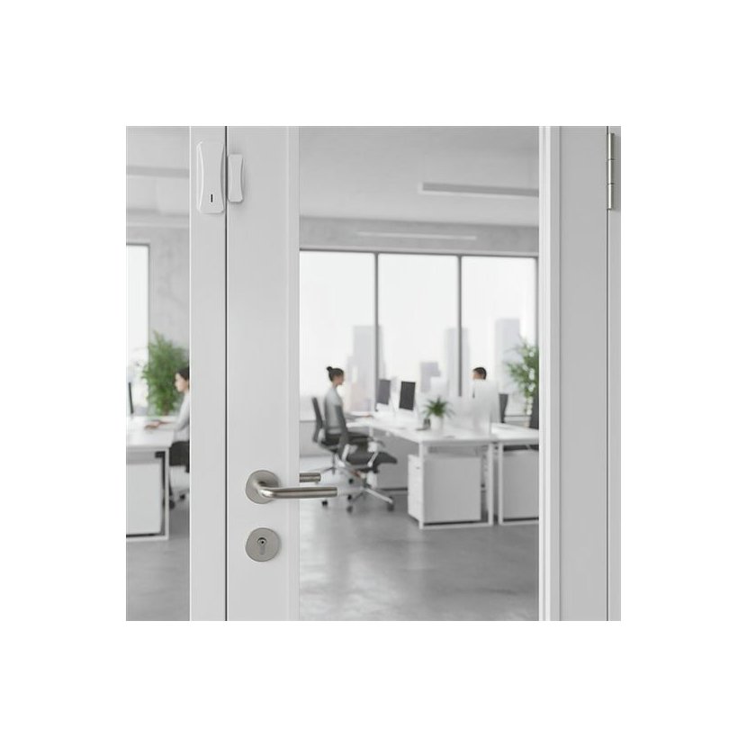 Doplňkový senzor na dveře nebo okna se hodí všude tam, kde potřebujete rozšířit přehled o pohybu na vstupních místech do objektu – v prodejnách, recepcích, skladech, průmyslových provozovnách nebo i v domácnostech, garážích, přístavcích, apod. Magnetické čidlo vyšle signál ve chvíli, kdy se dveře nebo okno otevřou.