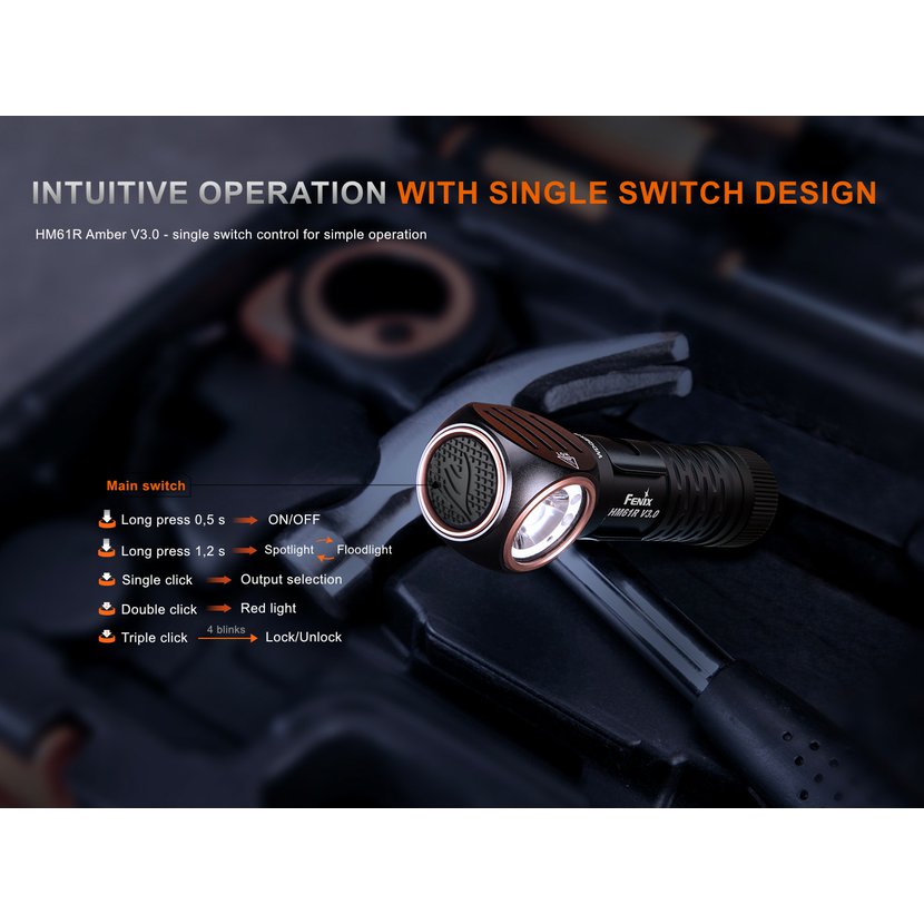 Multifunkční svítilna Fenix HM61R Amber V3.0 je ideálním společníkem pro různorodé sportovní aktivity, služební a profesionální použití, výlety do přírody i do domácnosti a na práci.