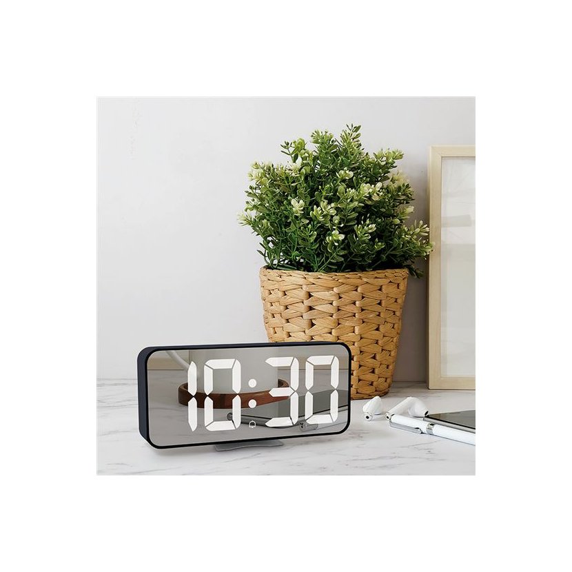 zrcadlový LED displej zobrazující čas nebo teplotu (možnost přepínání zobrazení)