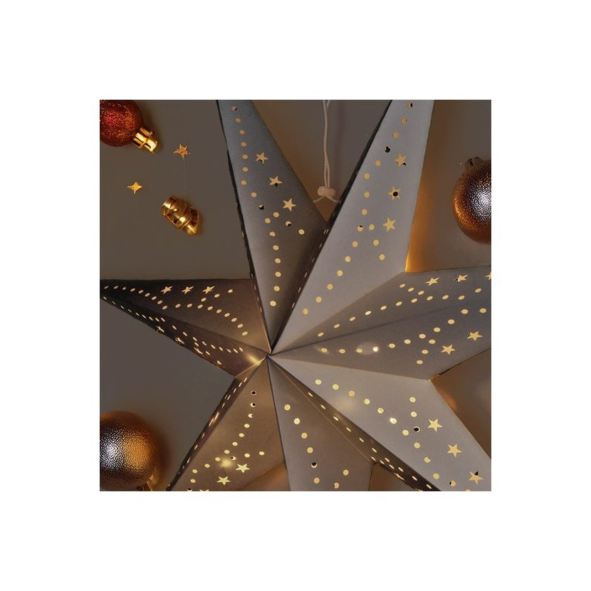 Hvězda je vyrobena z lehkého papíru, díky čemuž působí vzdušně a elegantně. Je dodávána ve složeném stavu v krabici pro snadnou přepravu a skladování. Ideální pro výzdobu oken, stěn nebo jako stylový doplněk slavnostního interiéru.