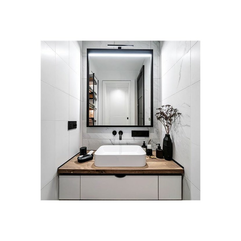 LED světlo s příkonem 7 W a délkou 40 cm je možné, díky univerzální montáži, připevnit přímo na zrcadlo, na stěnu nebo na zrcadlovou skříňku. Poskytuje neutrální bílé světlo s teplotou chromatičnosti 4000 K a světelným tokem 455 lm. Díky širokému vyzařovacímu úhlu 120° rovnoměrně nasvítí prostor před zrcadlem. LED technologie zaručuje dlouhou životnost až 20 000 hodin, zatímco kvalitní podání barev (Ra > 80) zajišťuje věrné zobrazení pokožky i make-upu.