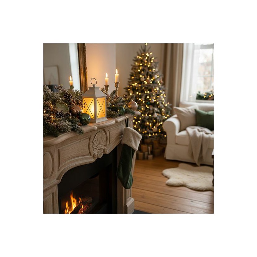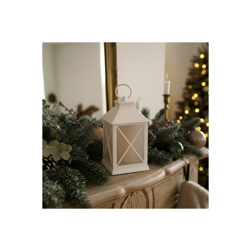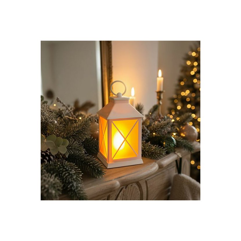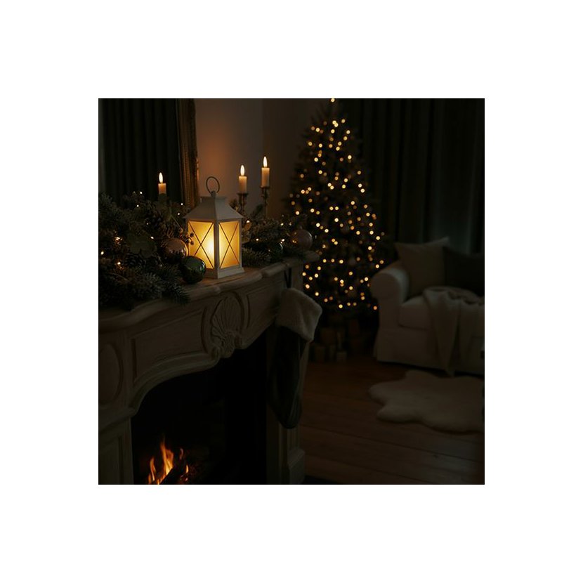 Vytvořte si kouzelnou vánoční atmosféru s elegantní bílou lucernou s blikajícím plamenem. Tato stylová dekorace vnese do vašeho domova teplo a pohodu svátečního období.