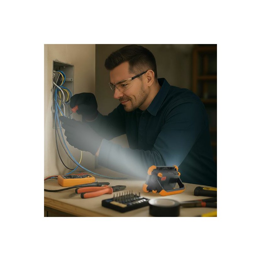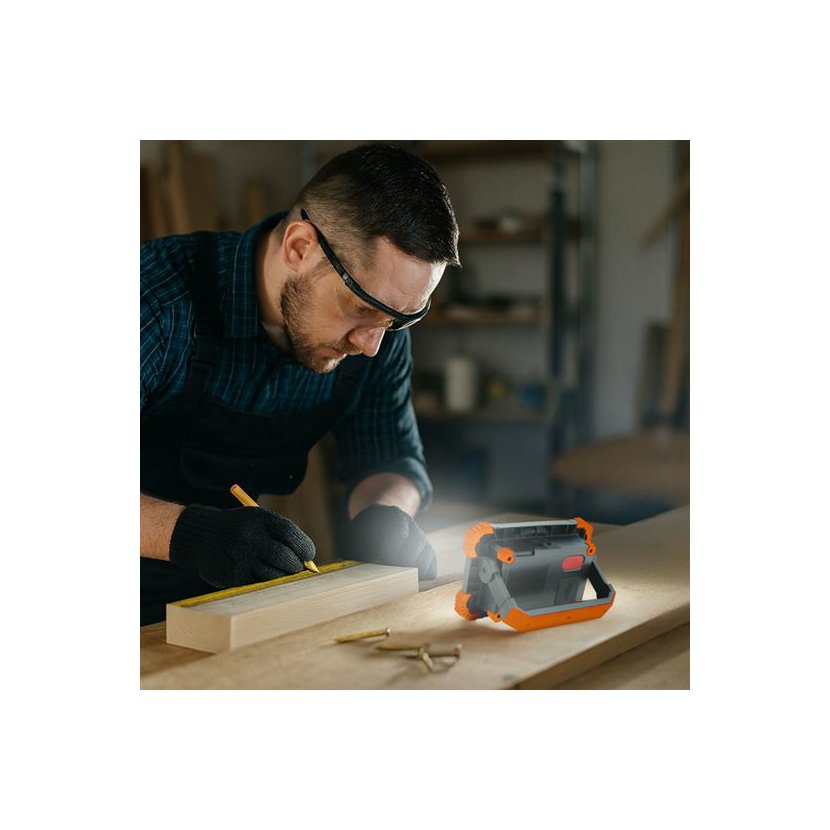Reflektor nabízí světelný tok až 1000 lm při výkonu 10 W, k dispozici jsou dva režimy svícení – 100 % a 50 %. Přirozené a rovnoměrné osvětlení zajišťuje COB LED dioda s neutrální bílou barvou světla 4000 K.