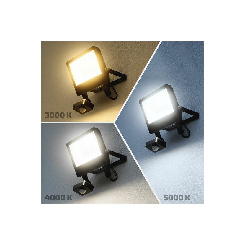 výkonný LED reflektor řady TOP s pohybovým senzorem, nastavitelným výkonem, teplotou světla a praktickým konektorem pro rychlou montáž