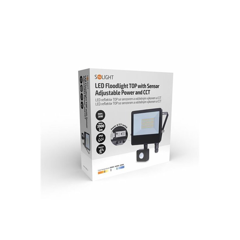 Parametry produktu LED reflektor TOP 30 W, se senzorem, 3900 lm, volitený výkon 66 a 100 %, Solight