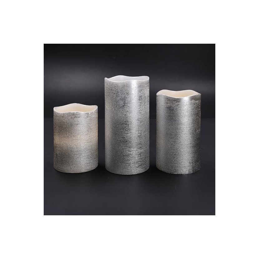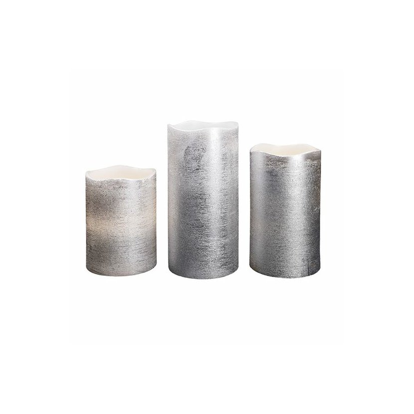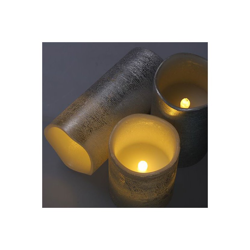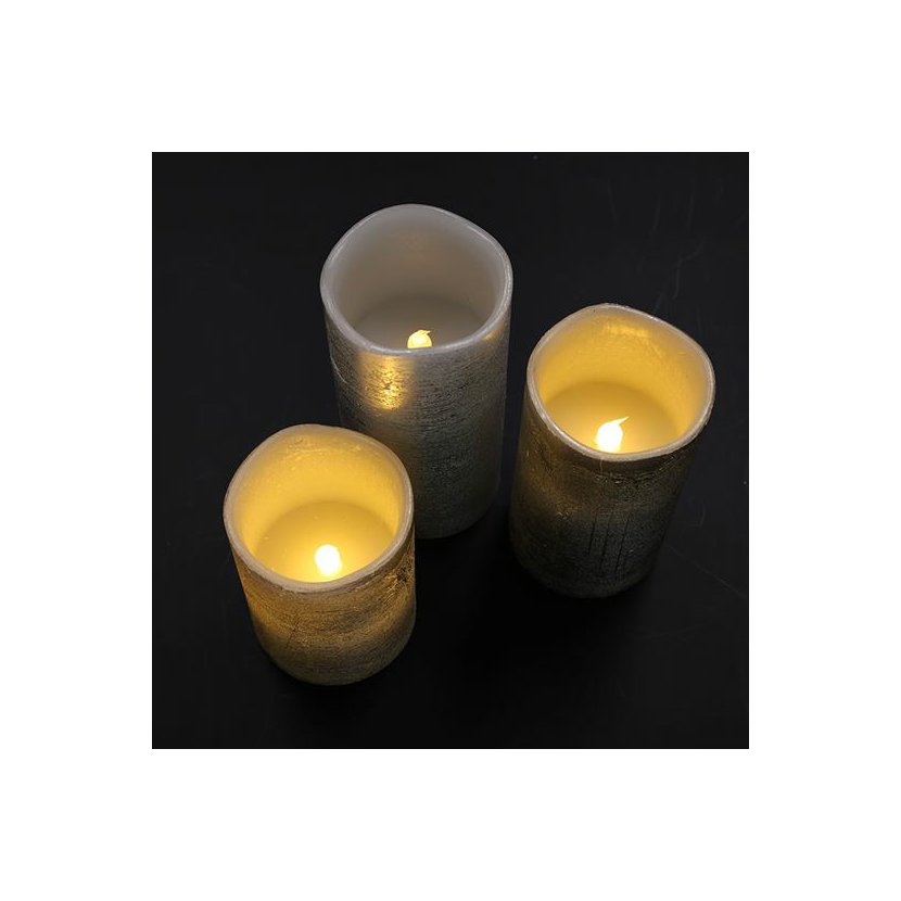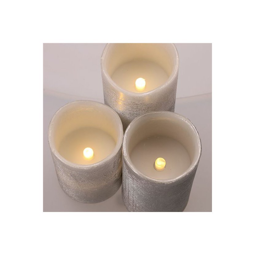 sada LED svíček z vosku s přirozeně blikajícím plamenem ve stříbrné barvě