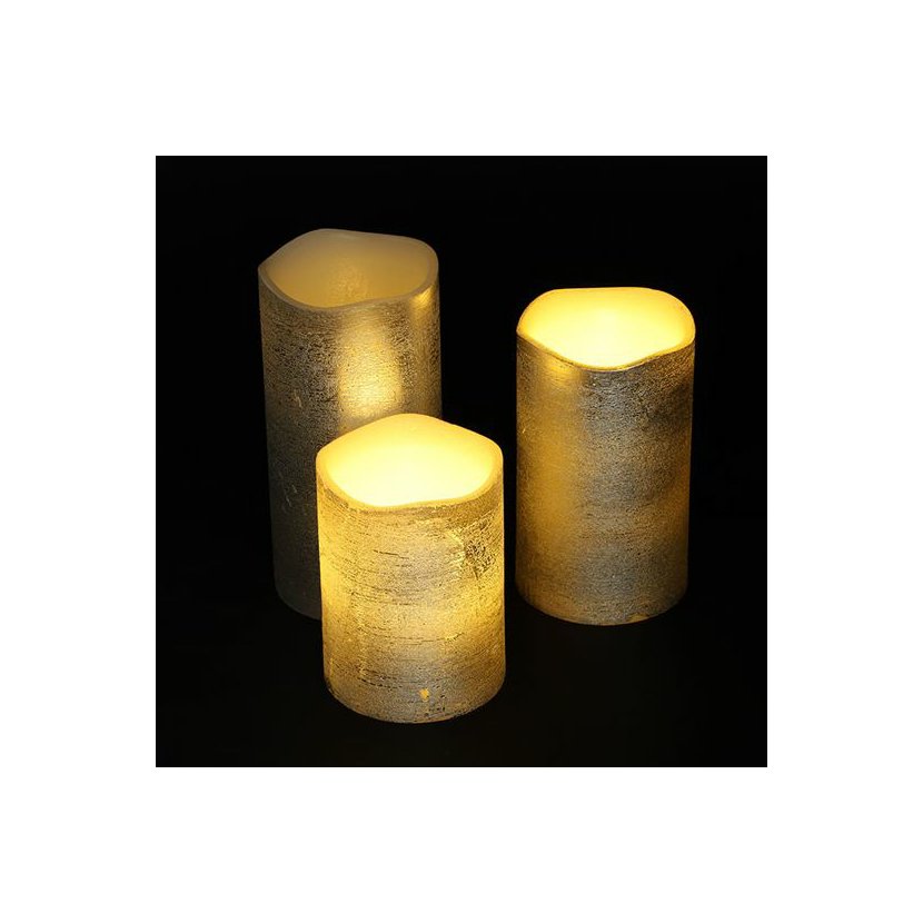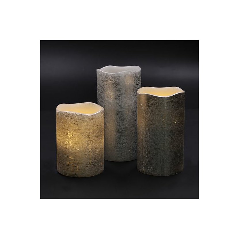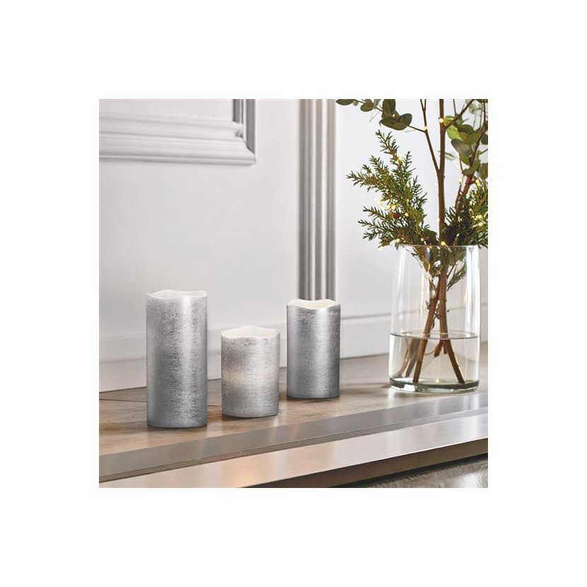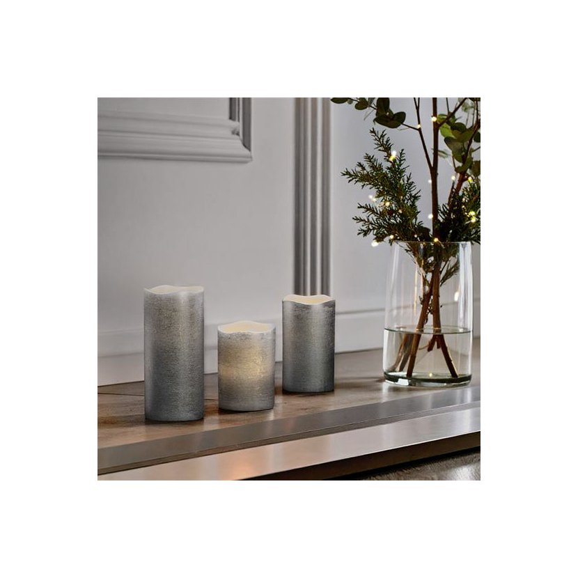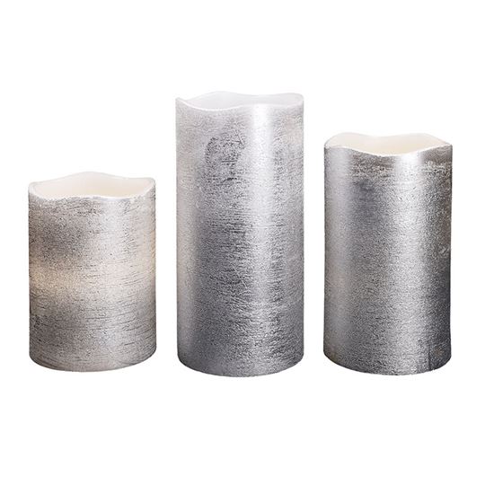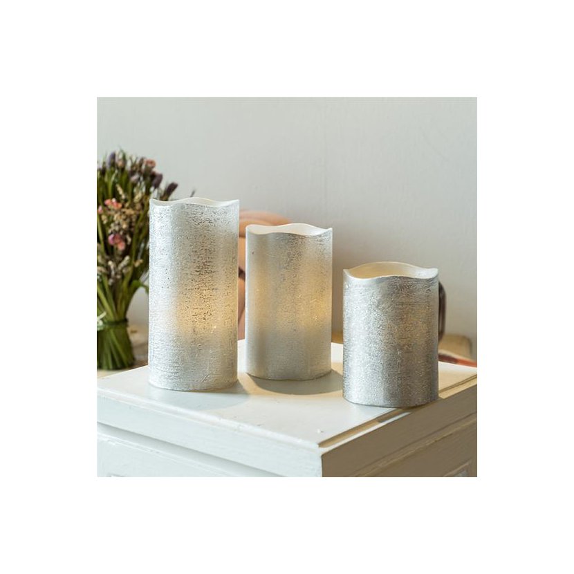 sada LED svíček z vosku s přirozeně blikajícím plamenem ve stříbrné barvě