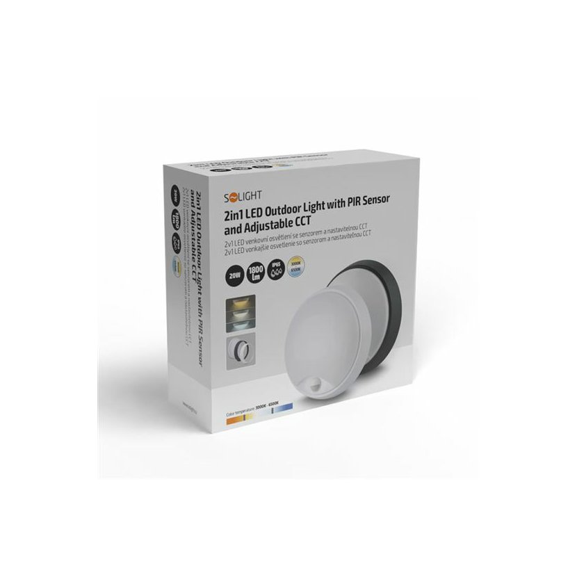 světlo s pohybovým sensorem, speciálním LED zdrojem s přepínačem, který umožňuje nastavení teploty světla (CCT / chromatičnosti) 3000 K, 4000 K nebo 6500 K, současně lze volit příkon mezi 15/18/20 W