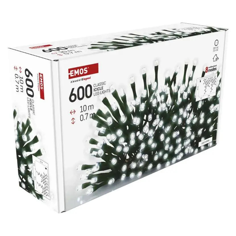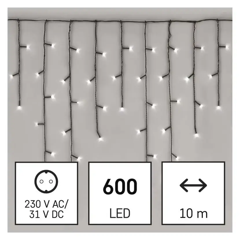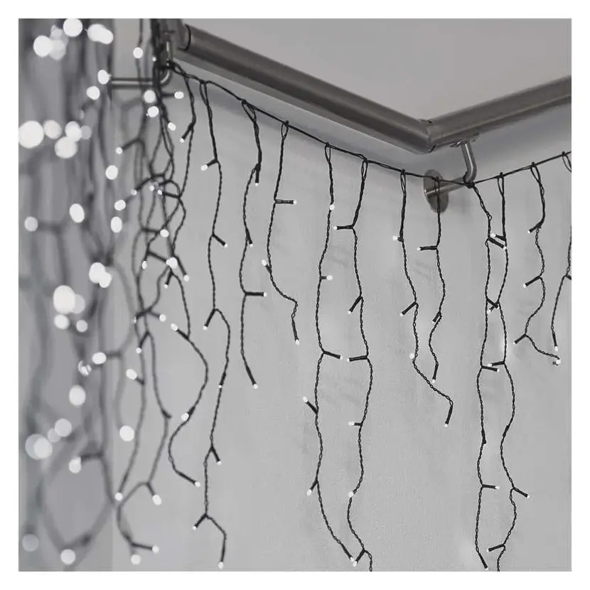 Vánoční řetěz rampouchy (krápníky) pro vnitřní i venkovní použití, 8 funkcí, 230 V, teplá bílá