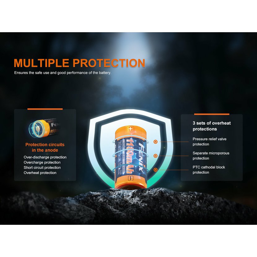 Fenix ARB-L16-1150P patří k nejbezpečnějším Li-ion akumulátorům na trhu díky dvoustupňové ochraně: