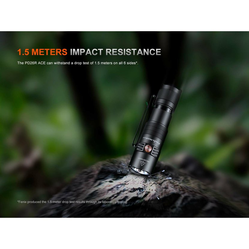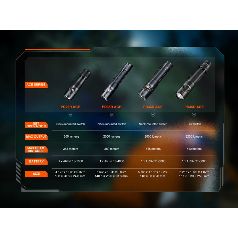 Díky digitální regulaci poskytuje svítilna konstantní světelný výkon i při postupném vybíjení akumulátoru. PD26R ACE zaujme nejen kompaktními rozměry a skvělým výkonem, ale také designem těla, který zabraňuje kutálení a prokluzování v ruce. Je proto ideální volbou do služby, pro všechny outdoorové nadšence a skvěle poslouží i pro každodenní použití.