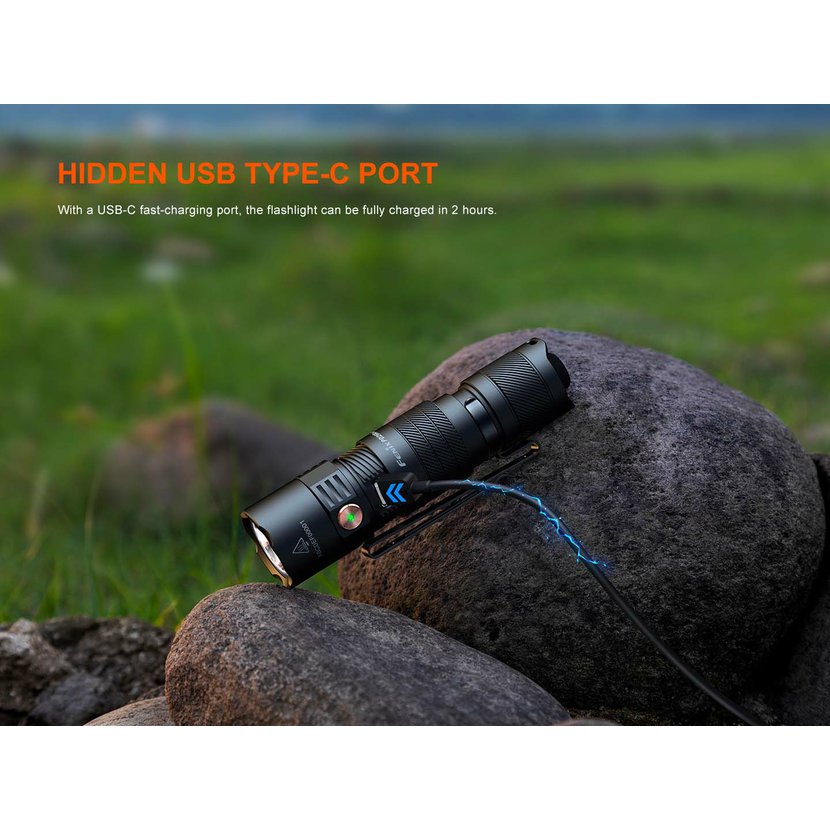 Nabíjecí LED svítilna Fenix PD36R V2.0 se svítivostí 1700lm, dosvitem 396m, IP68, nabíjení přes USB-C konektor, baterie 5000mAh