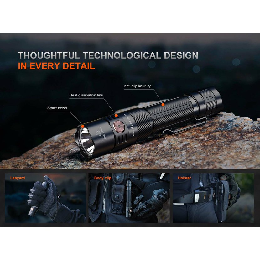 PD35R ACE zaujme nejen kompaktními rozměry a ohromujícím výkonem, ale také taktickým koncovým spínačem a možností připojení kabelového spínače Fenix AER-02. Je proto ideální volbou nejen pro všechny outdoorové nadšence, ale skvěle poslouží i příslušníkům armády, bezpečnostních složek či myslivcům.