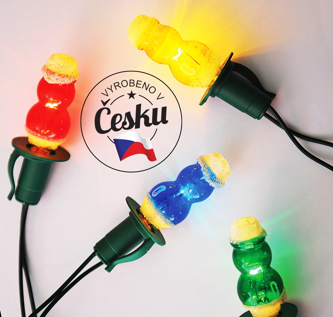 Žárovková vánoční sada SNĚHULÁK Exihand barevná, 12 žárovek, délka 10,7 m + 3 m