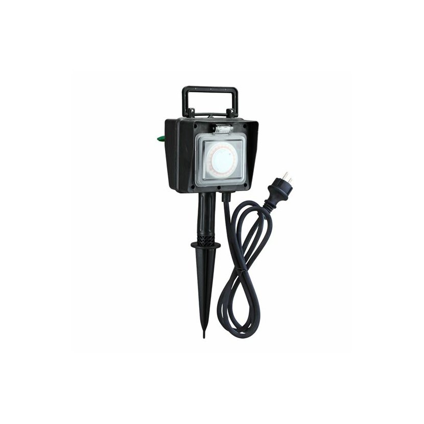 uzemněný plastový sloupek s elektrickými zásuvkami a časovým spínačem